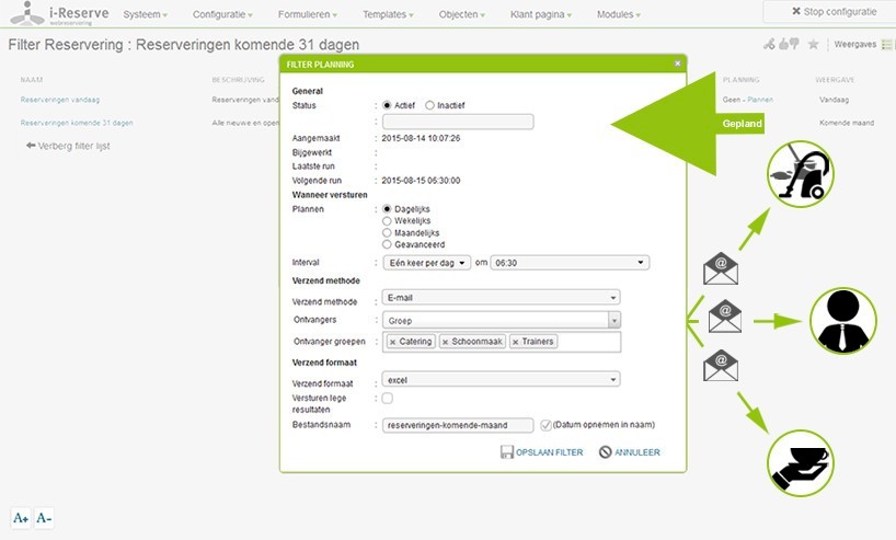 Iedere nacht een rapportage van de reserveringen voor de volgende dag? Statistieken van de afgelopen maand? Binnen i-Reserve bepaal jij welke informatie je wilt zien en wanneer je deze wilt ontvangen.